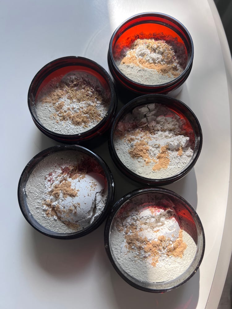 • Frankincense Powder (Boswellia carterii) – revered for its rejuvenating and toning properties; helps reduce redness, refine texture, and promote radiant clarity