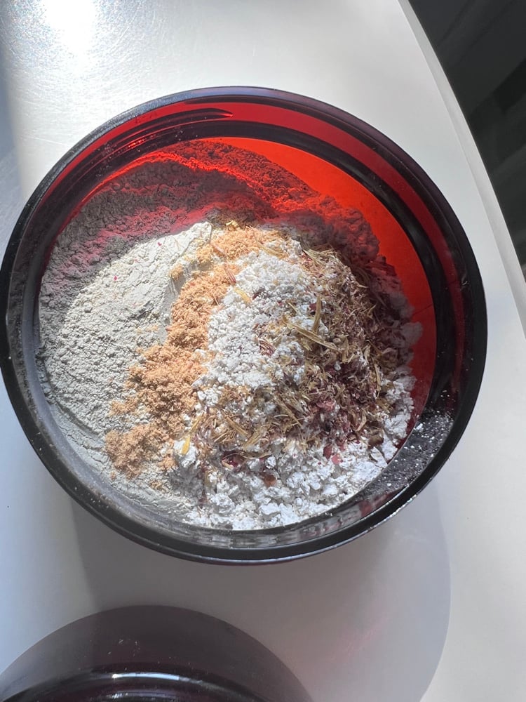 Mix 1 tsp of dry mask with water, honey, or a hydrosol until a smooth paste forms.